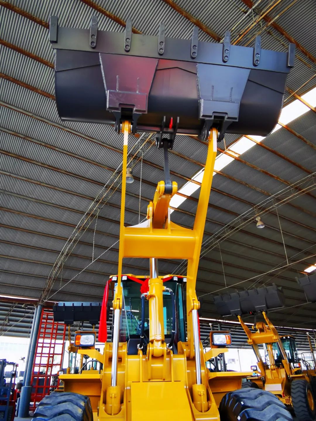 2、立式油缸工作裝置布局,高位提升力大,滿斗裝車(chē)效率高,更適用于裝卸和起吊作業(yè)工況。